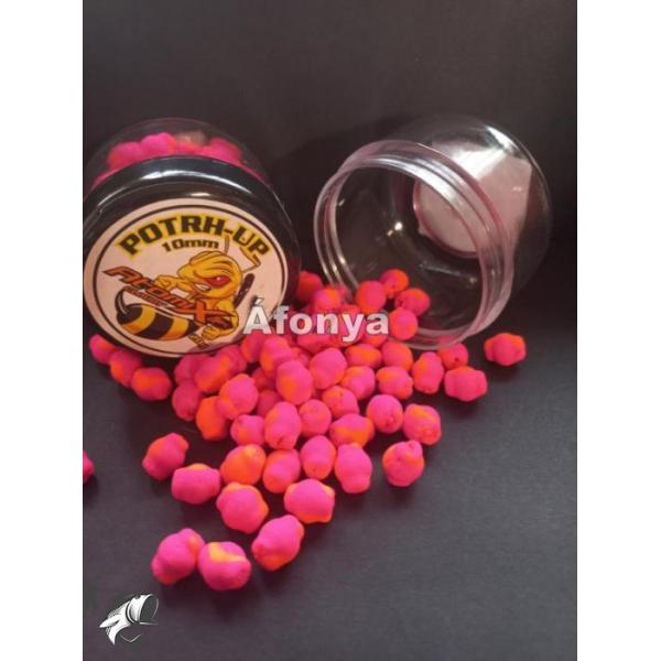 A POTRH-UP fantázia névre hallgató csali egy pellet formavilágú, rovar testét imitáló forma. Gondosan összeválogatott fehérjedús alapanyagok mellet került bele betain és csonti liszt is. Élénk színekben és intenzív aromákkal készülnek, így rendkívül figyelem felkeltőek.
