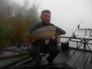 Sajnálatos módon a szívélyes fogadtatás ellenére az időjárás nem volt velünk ennyire kedélyes. Nem volt olyan időszak a négy nap alatt, hogy eső, záporeső ne lett volna. Sőt úgy mondanám inkább, hogy bőséges csapadékkal ajándékozott meg minket a jó Isten. Akkor valahogy nem így fogalmaztam meg…. Kis idő elteltével megérkezett az első kapásunk. A tanácsokat megfogadva nem vágtunk be egyből, hanem csónakkal rámentünk a halra, majd felette kezdtünk el fárasztani. De hiába. Esélyünk nem volt, mivel őkelme ez idő alatt kiválasztotta magának az úszó nádszigetet és aláúszott. Onnan esélyünk se volt, hogy a szákba tereljük. Megérkezésünket követően úgy ültem le horgászni, hogy a becsület halat remélem meg fogom fogni. Az első éjszakánk ezt követően viszonylag csendesen telt el a szakadó eső és a hidegfront ellenére. Peti barátomnak hajnali kettő órakor elfüstölt az egyik botja. Ő a rossz időjárás ellenére nem fogadta meg a fárasztásra vonatkozó tanácsokat, hanem esélyt nem adott a halnak arra, hogy az akadóig elérjen. A féket keményre állította, és kő kemény fárasztásba kezdett, amely kb. bruttó 5 percig tartott. Íme a végeredmény egy gyönyörű töves.