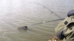 Még javában a kézfejem ízületeivel voltam elfoglalva, amikor az első hal minden előjel nélkül eltekerte a botomat. Ezt olyan harciasan tette, hogy egészen a zsinórkiakasztásig jutott. Óvatosan ráemeltem, majd lassan visszanyertem néhány tekerésnyi damilt. A kellő tartalék birtokában már rutinos mozdulatokkal tereltem szákba a 1,5 kilós pontyocskát.