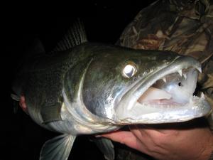 Emberesen bevágtam és botom perecben maradt. Emeltem egyet pálcámmal, várva a reakciót, mire halam felszínre tört. Huh, csak nem harcsával hozott ismét össze a sors? - rémlett fel bennem a tavaly januári kaland, de nem, áldozatom folyásnak felfelé iramodott közben ritmusosan produkálta az ismerős süllő fejrázásokat. Lazítottam orsóm fékjén, majd vízszintesen tartva botomat hagytam, hogy a mélységben tombolja ki magát áldozatom. Azt nem tudtam, hogy újabb rekord fogas került e horgom végére, de az biztos, hogy a múltkorinál jóval erősebbnek bizonyult. Végül magam felé tereltem, miközben kezemmel fejlámpám után matattam, de basszuskulcs, hiszen nincs is! Ráadásul segítségem sem akadt. Valami nagy fehérség sejlett fel előttem a sötétben, azt sem láttam, hol az eleje, hol a vége zsákmányomnak. :o) Ezt most egyedül kell megoldanom...