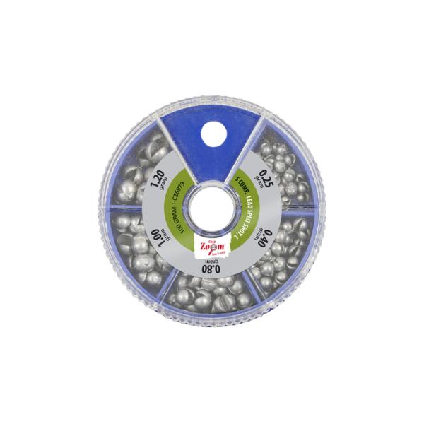 Az úszós peca elengedhetetlen eszköze a könnyen kezelhető sörétólom. Ebben a készletben 5 különöböző súlyú ólom található. Az anyag könnyen nyomható.
