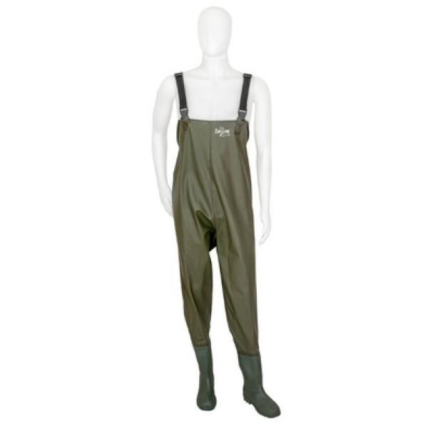Strapabíró PVC anyagból, klasszikus zöld színben készült melles csizma. A pánt a vállakhoz állítható hosszúságú, melyet villám csattal látott el a gyártó. Alá öltözve akár a hideg, késő őszi horgászatok során is alternatívát jelent. A gumicsizma kialakításának köszönhetően kényelmes viselet. Pergető, legyező horgászoknak ajánljuk, de tökéletes választás akár bojlisoknak is, ha a reggeli fotózásig, mérlegelésig a kifogott halat a parttól beljebb, oxigénben gazdagabb vízben szeretnék kíméletesen elhelyezni. Meder karbantartási és mezőgazdasági munkáknál is hasznos kiegészítő.