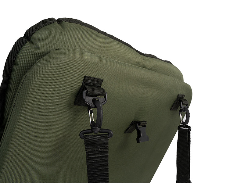 Ezt a széket egy vállra akasztható, levehető hevederrel is felszereltük, így szabad kezet kaphat más horgászfelszerelés szállításához. Ezenkívül a szék egy műanyag klipsszel is rendelkezik, amely rögzíti a szék helyzetét szállítás közben, és megakadályozza a nem kívánt kinyitódást.