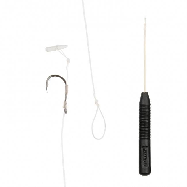 A csomagban található tű segítségével könnyedén átszúrhatjuk a stoppert a horogcsalikon, így rendkívül gyors a csalizás. Puha és félkemény csalik használata esetén a kemény tüske önmagában képes áthatolni rajta, kemény (pl. tigrismogyoró) esetében célszerű azt előfúrni.