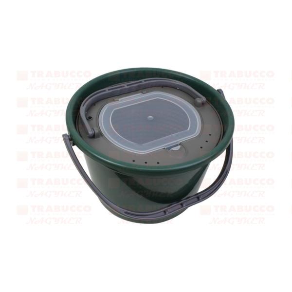 Praktikus csalihaltartó vödör, mely a betét kivétele után klasszikus vödörként (pl, etetőanyag keverésre, stb.) is használható.