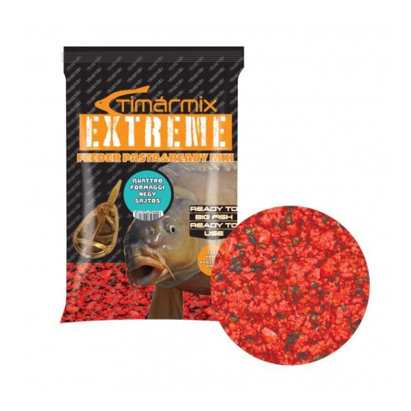 A Tímár Mix Extreme Ready Mix Quattro Formaggi egy prémium, előre nedvesített, azonnal használható etetőanyag, amelyet kifejezetten a pontyos, kárászos, nagyhalas horgászat igényeire fejlesztettek. A keverék alapja egy finom szemcséjű, édes kukoricás mix, amely gyorsan dolgozik, intenzív illatfelhőt képez, és gyorsan odavonzza a békés halakat.