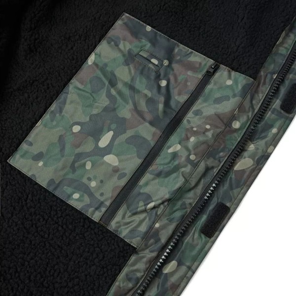 A Trakker CR Camo Robe rendkívül vízálló, 5000 mm-es hidrosztatikus fejű külső anyagból készült, teljesen ragasztott varratokkal; ez az esőkabát maximális védelmet biztosít az időjárási viszontagságok ellen. A cipzáras, polárral bélelt kézmelegítő zsebek és a rendkívül vastag sherpa polár bélés kiváló hőszigetelést biztosítanak. A sherpa polárral bélelt kapucni további meleget és védelmet nyújt, míg az állítható mandzsetták kényelmes illeszkedést biztosítanak.